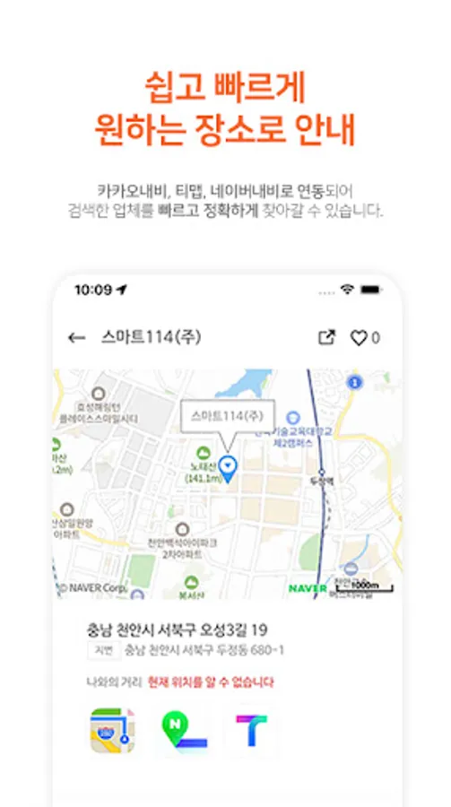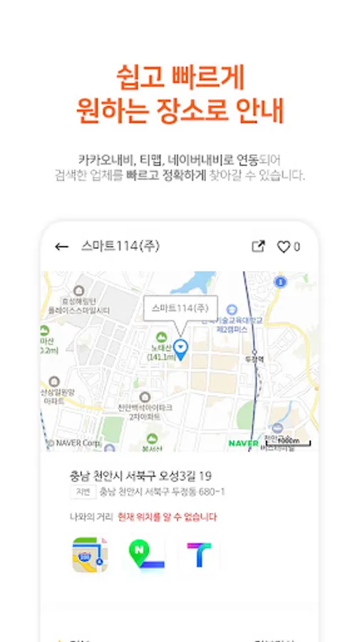 Kakao Navi, Tmap Navi, or Naver Directions interlocking services help you find the searched company quickly and accurately.