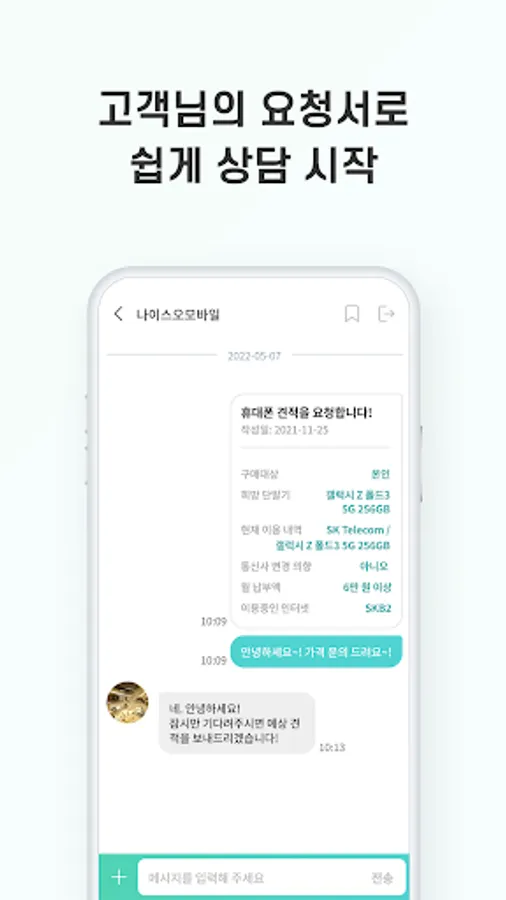 Perth is a service that shows a list of mobile phone stores near the user (in our neighborhood) and enables chatting consultations so that you can easily get a quote without visiting. Of course, since it is non-face-to-face, it is an effective platform service that allows customers to request a quote without any burden and inform customers of the benefits of our store.