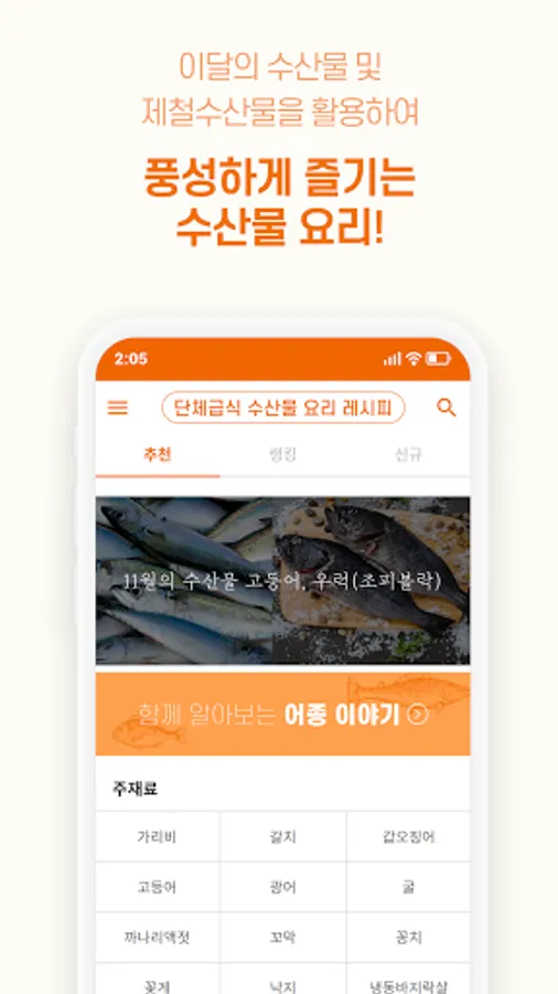 -Recommended recipes using seasonal seafood such as the seafood of the month