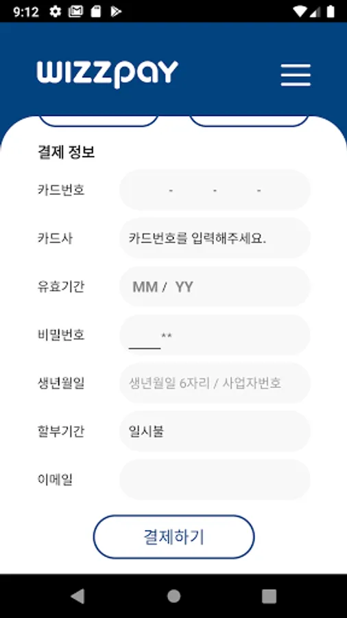 -General (secure key) payment: After receiving the buyer card information entered into the application, payment approval