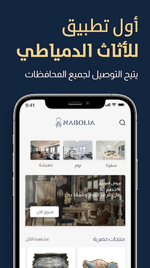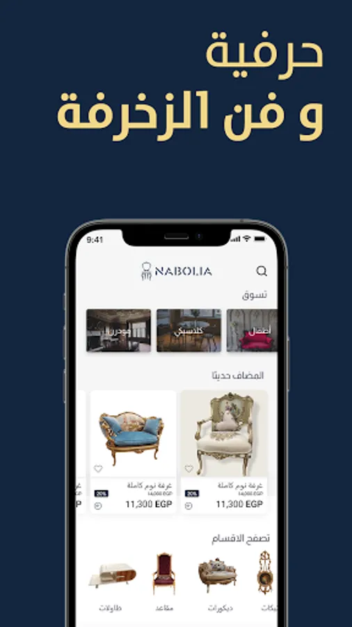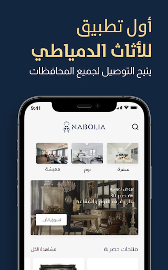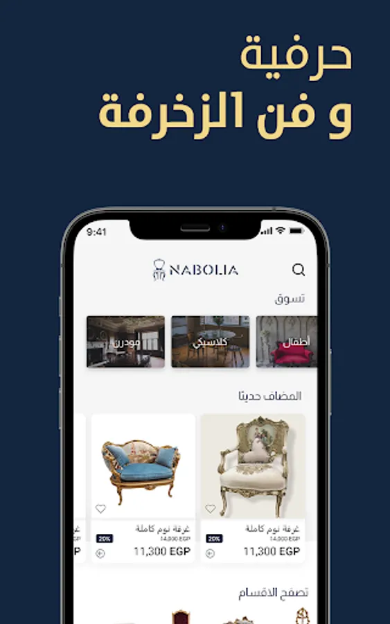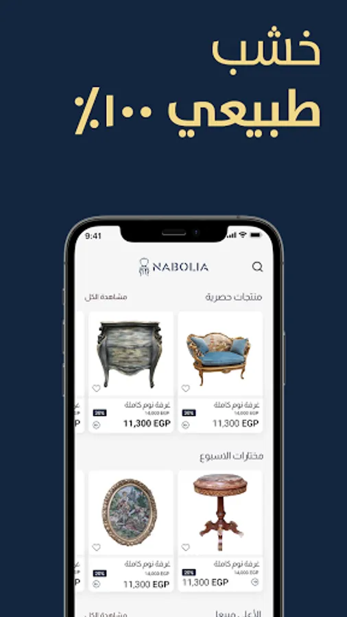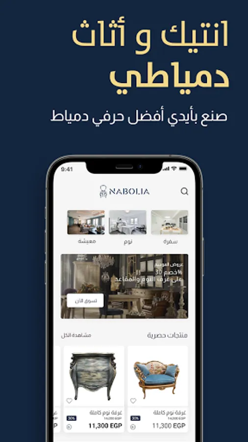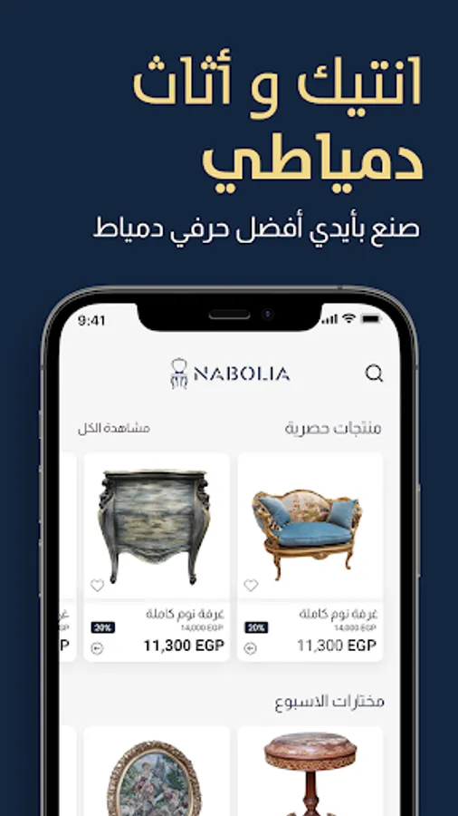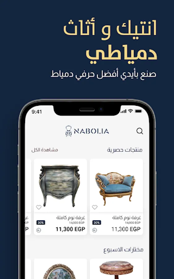 Nabolia App Provides you with all furniture and antique pieces From Damietta. All Products are handcrafted by a unique selection of Damietta craftsmen to offer the best quality and price for the Egyptian product.