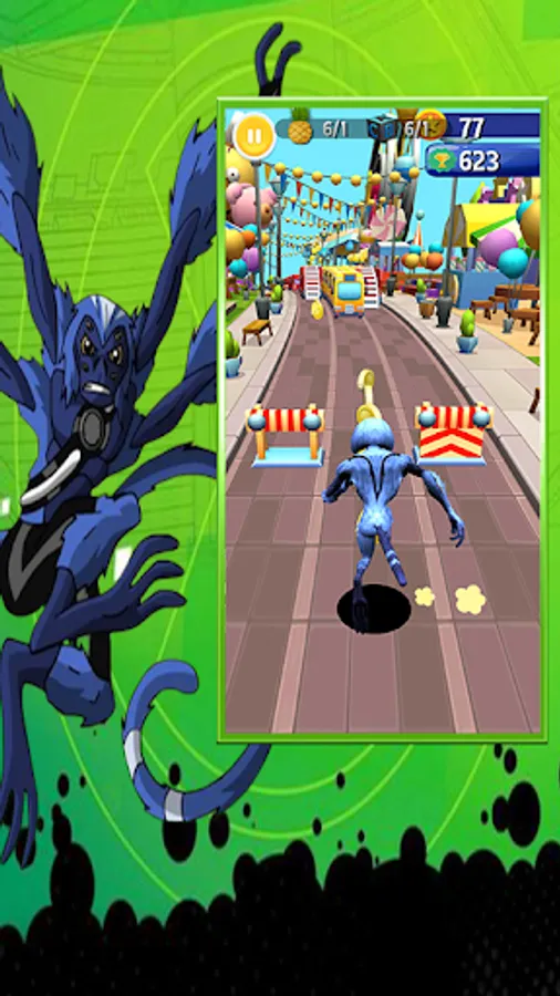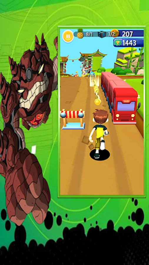 Run and Rush as fast as you can, Slide or right , jump help your superhero ben and omnitrix alien 10 to escape from the oncoming trains and buses.