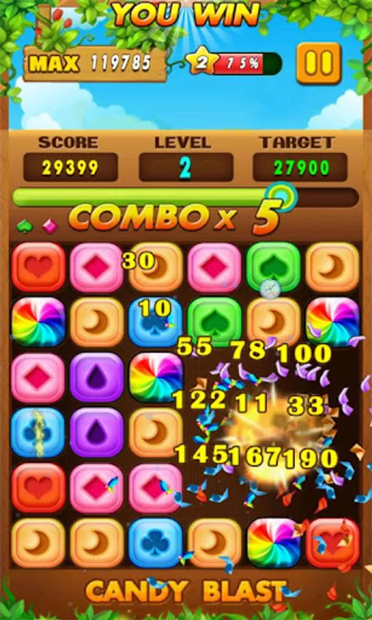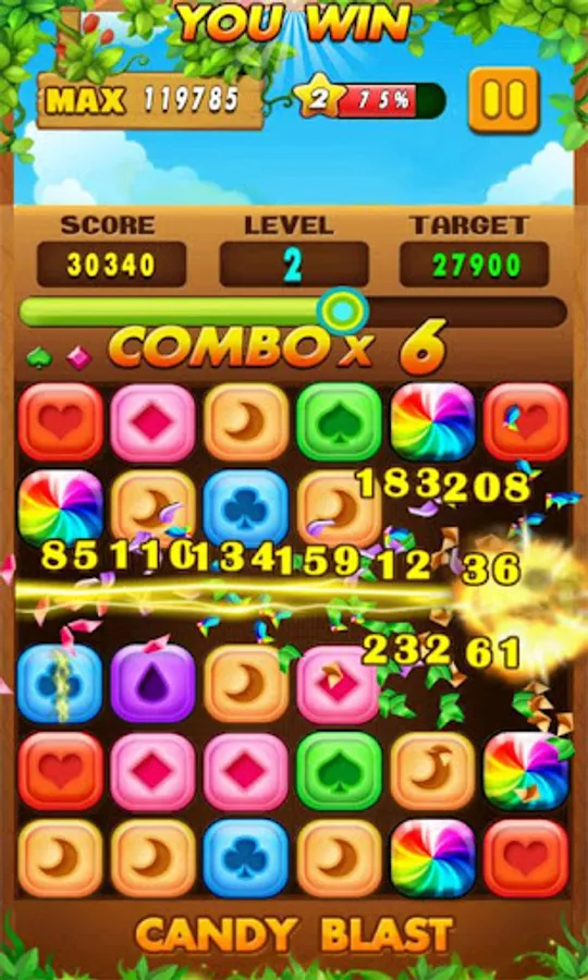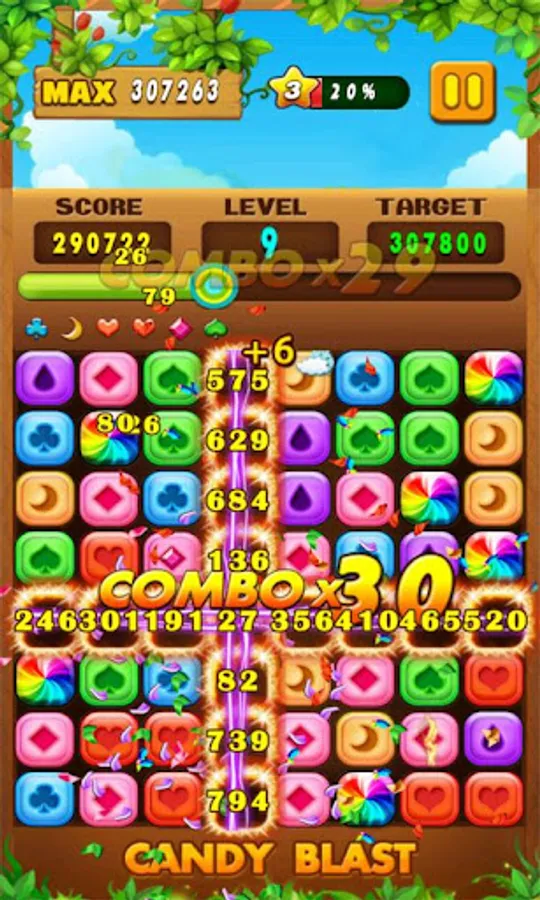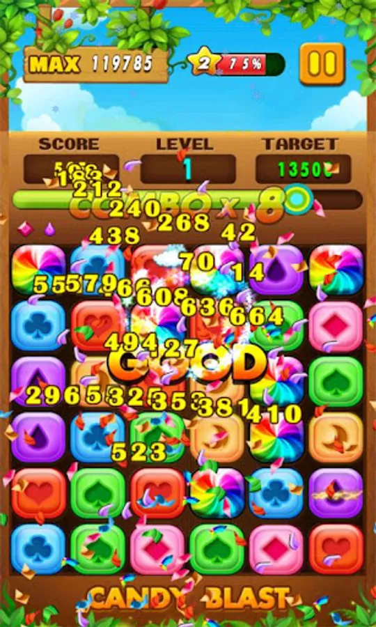 - Tap candies very fast, and try to make more combos!