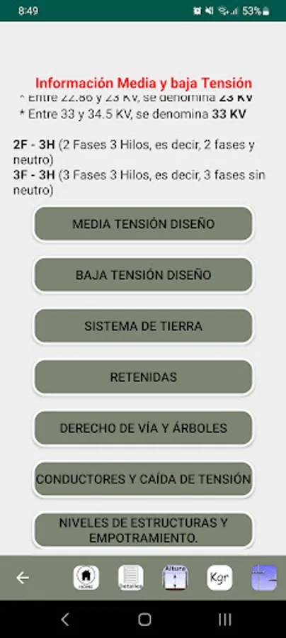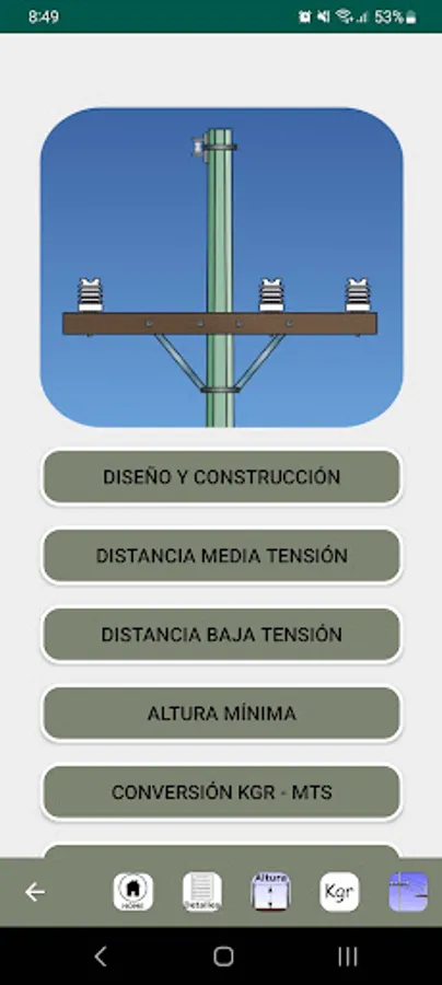 In this mobile application it is possible to have at hand the most important things for the design and construction of medium and low voltage overhead lines.