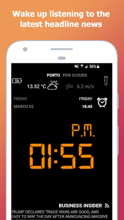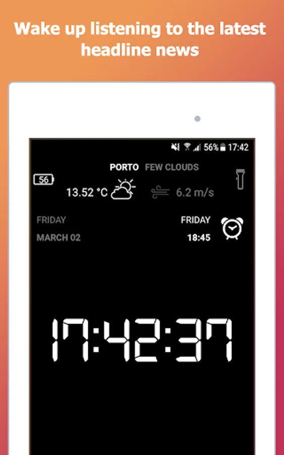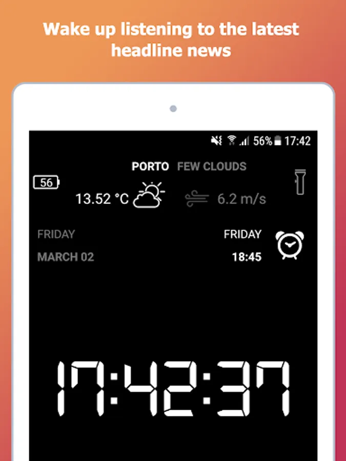 You can simply choose a ringtone, relax music or (with our talking alarm clock) wake up with real time weather information and headline news.