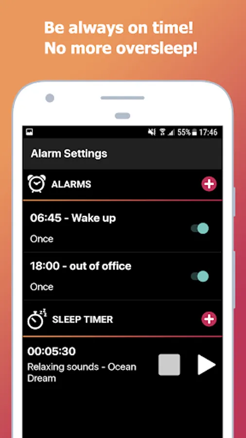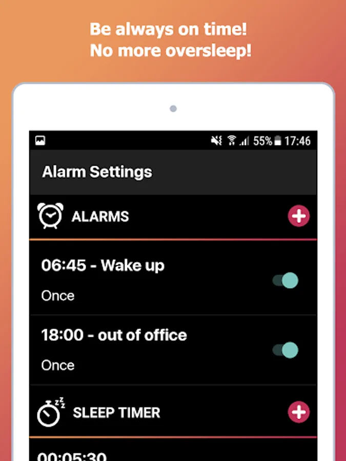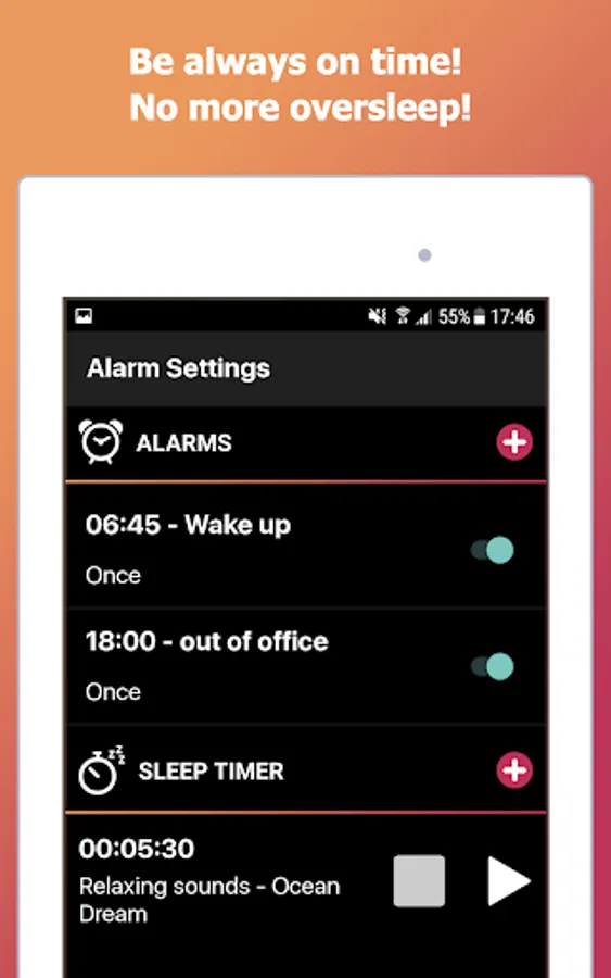 myAlarm Clock is the perfect free alarm clock app for those who want a different wake up experience every day, it's very easy to use, customizable, for a gentle wake up in the morning or for heavy sleepers. No more oversleep!
