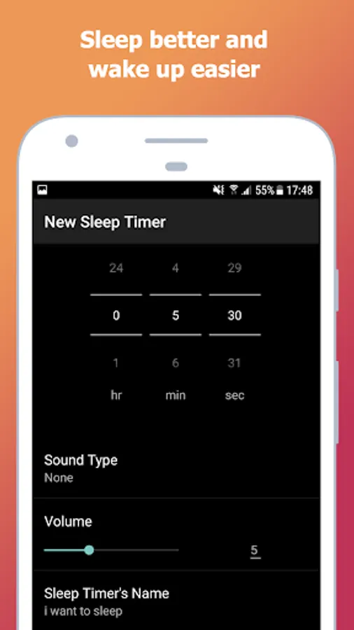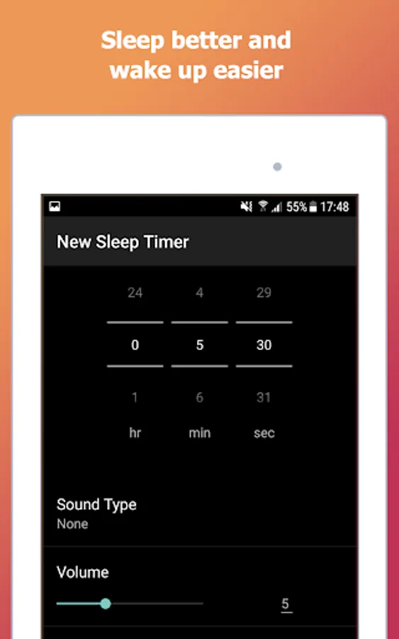 Choose a relaxing music or set a quiet alarm clock to smoothly increase volume to wake you up gently in the morning (adjust the sound volume to fit your needs).