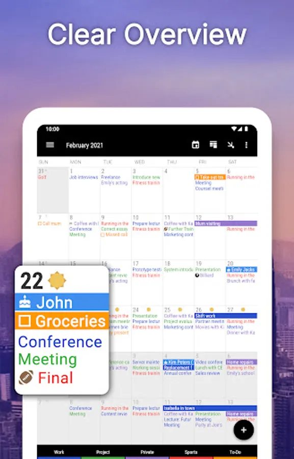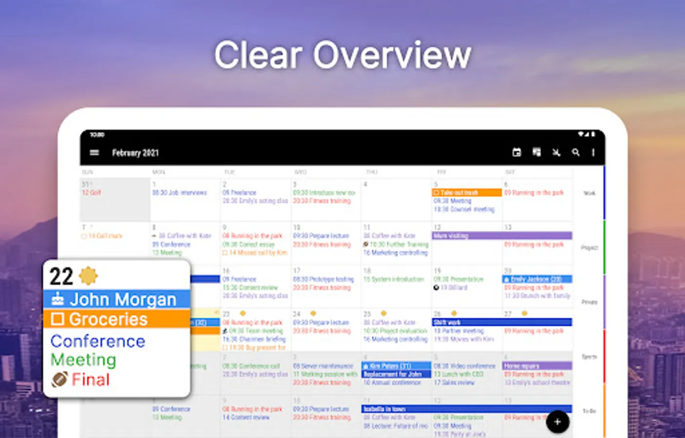 Business Calendar 2 has everything you need in a calendar app: It provides an excellent overview of your appointments, itβs easy to use and it gives you powerful tools for planning your events and tasks.