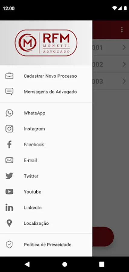Application developed for RFM Monetti Advogados clients, to monitor and receive the progress of the process directly on the smartphone. The APP also allows our customers to receive messages from the office directly in the application, creating a special communication channel for our customers. Our goal is to serve you better and better!
