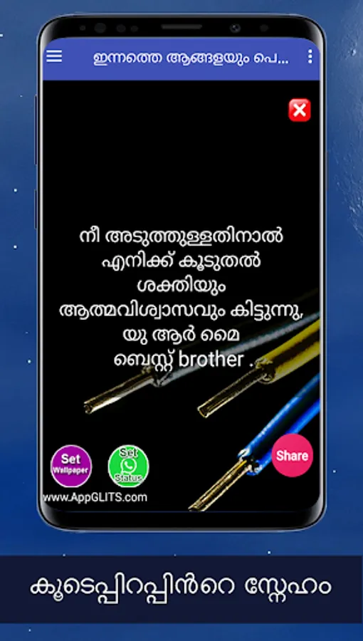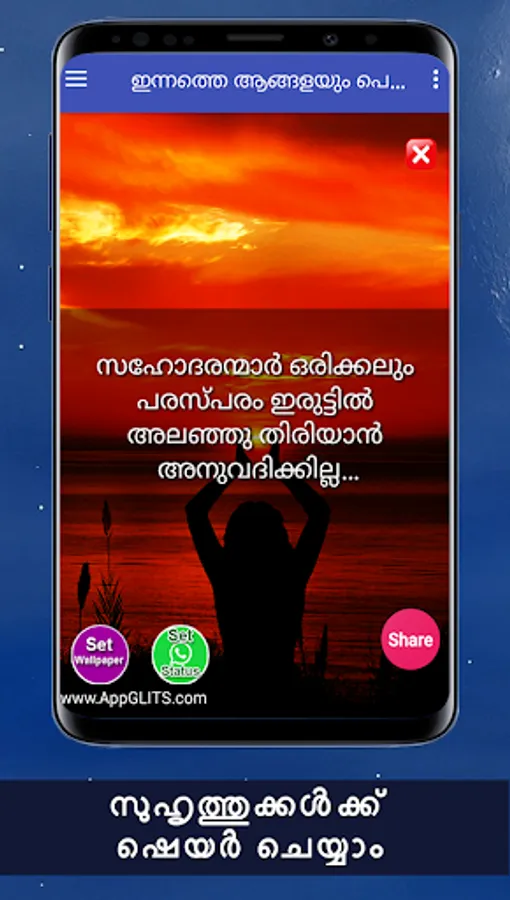 Hai friends!! Its an very simple brother sister quotes in malayalam language app. Here you can get family quotes in our malayalam. You can share these sister quotes in malayalam lyrics. Daily you can see the malayalam quotes and get inspirations. In this app we show sister status in malayalam. Here let you know about how to find birthday wishes for sister in law malayalam lyrics etc. These sister love quotes in malayalam language will touch your heart. You can share siblings quotes in malayalam language and many more. Here you can get caption for sister in malayalam. Also you share many happy sisters day malayalam kavitha to your favouite one. Here you can get best happy birthday sister in law malayalam and many more things about our daily life. So stay tuned our app and get the family love quotes with images in malayalam. Also some features of our app is best sister quotes and you will be getting positive approach. You can share wedding anniversary wishes for sister kavitha about life and family quotes in malayalam more. Here you can get anniversary wishes for sister in malayalam. In this android app simple funny sister quotes in malayalam language share to all your friends. Here you can get happy family quotes in malayalam words etc. You can set brother kavitha in malayalam hd wallpapers. You can share little sister quotes in malayalam.
