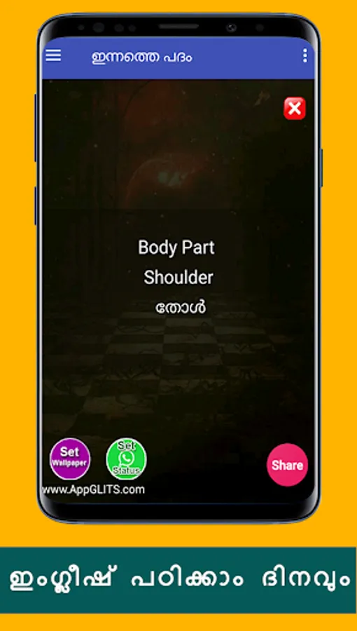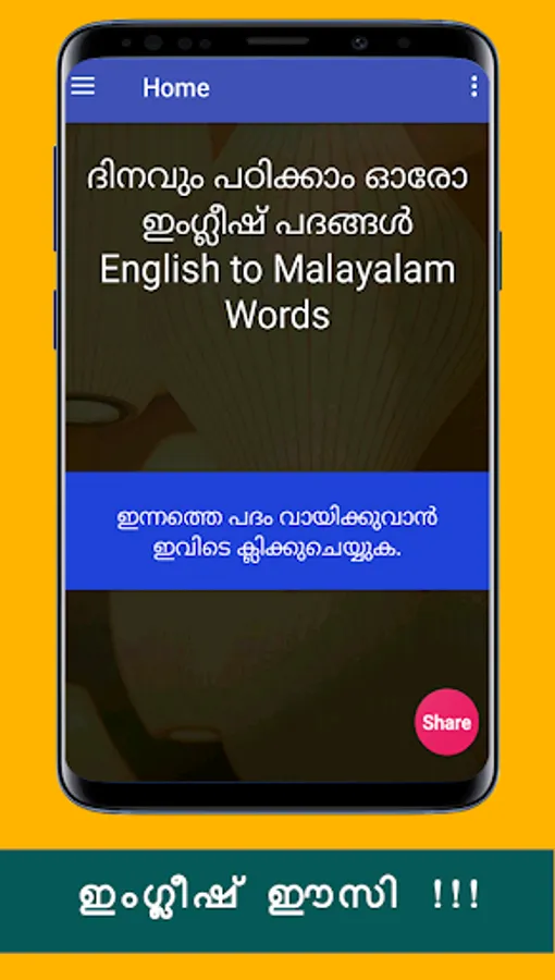 Namaskaram!Ella malayalikalkkum Namaskaram. Ee Android applicationil english anayasam samsarikkan ulla chila vakkukalum avayude malayalam arthavum aanu ulppeduthiyirikkunnath. Ee applicatione nigalude friends,relatives ellavarkkum Whatsapp,Facebook,Email,twitter thudagiya social media vazhi share cheyyuka.
