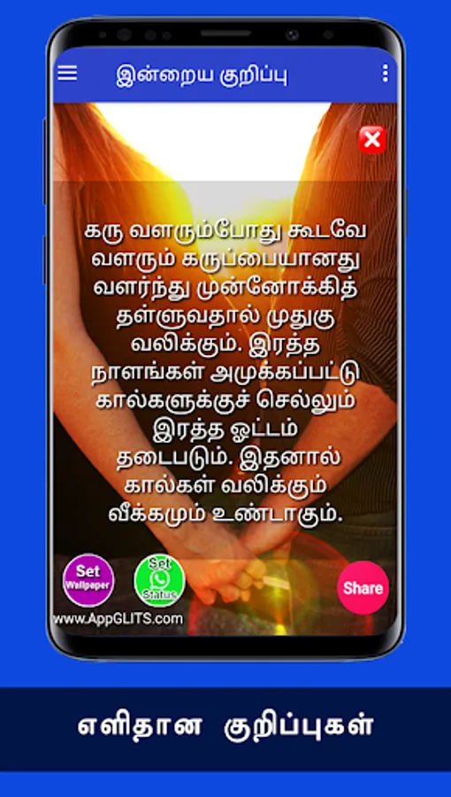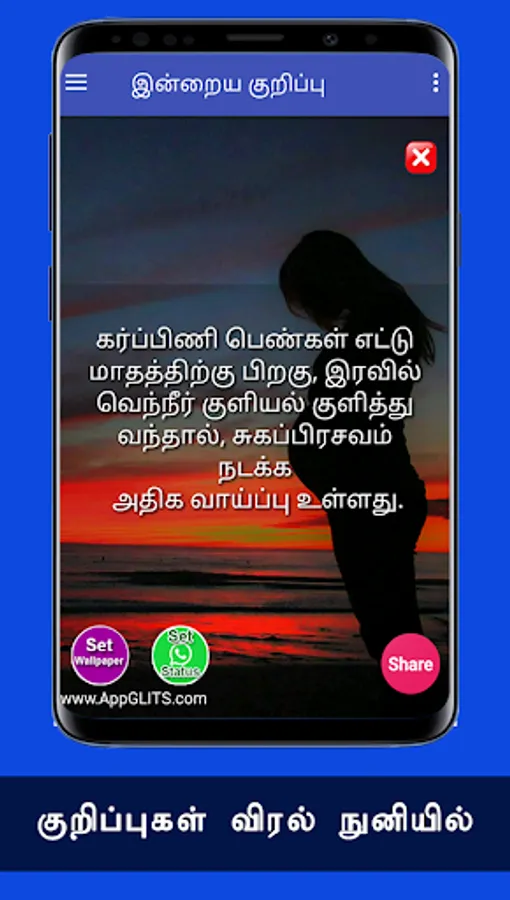 ulahengum vaalum Tamil nenjangangal anaivarukkum vanakkam. Intha seyaliyil prasava kala tamil tips download pannuvathu eppadi enbathai parungal. ithil prasava maruthuva kuripukal, alahu kuripukal, melum namakku pidikum vakaiyil ulla palveru thathuvangalai intha seyaliyil thokuthu valanga ullom. intha android seyaliyai anaithu nanbarkalukkum, uravinarkalukkum whatsapp, facebook, telegram, email pontra social mediavil share pannunga.