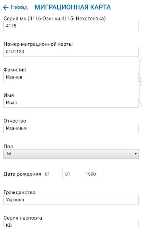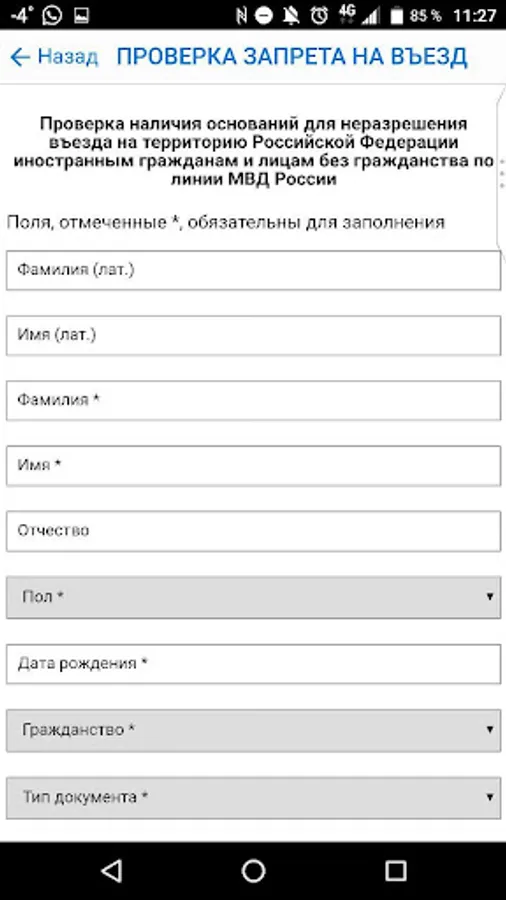 - Verification of the ban on entry into Russia;