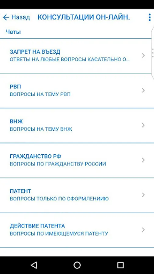 Appendix IMP migrants service- a reliable assistant Workers of Moscow and the Moscow region. You do not have to stand in line to get the necessary information. IMP MIGRANT SERVICE informs citizens on any issue of migration. All you need to know when getting RVP, residence permit, citizenship, a patent for a job there in our new app!