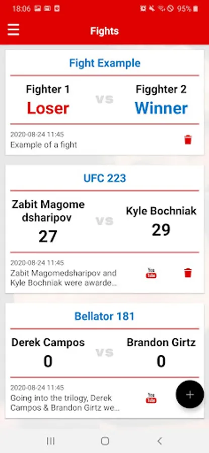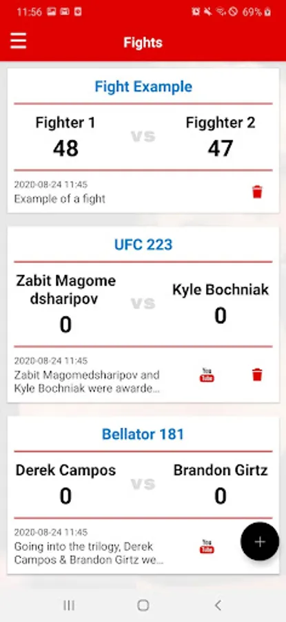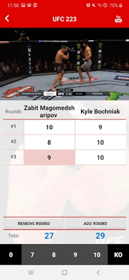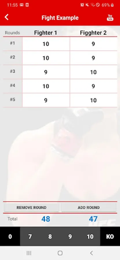 You can punctuate all types of combats like amateur fights or professional fights. Wwe added a new functionality where you can add a video (youtube) on every scorecard.