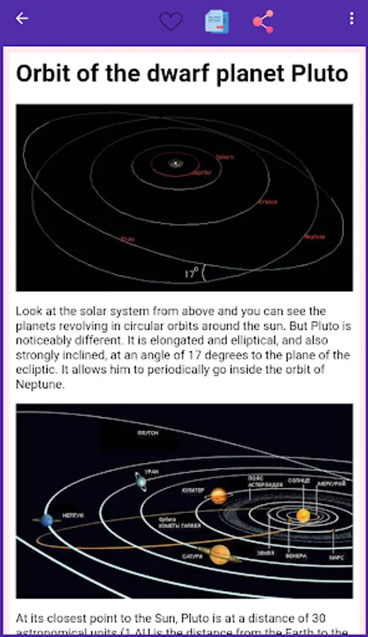 "Planets of the Solar System" - your reliable guide in the world of astronomy and the starry sky! Explore the planet Mars, Pluto and other planets in our solar system. Learn about the positions of planets and moons, planetary collisions, planetary occupancy, and ephemerides. Watch the constellations in the sky and learn about nautical astronomy. Our knowledge of the solar system, Mercury, Jupiter, Neptune and Uranus will help you better understand astronomy and astrophysics. We present to your attention information about the satellites, Benuariqui and the flat Earth. Download "Planets of the Solar System" today and start diving into the fascinating world of astronomy!