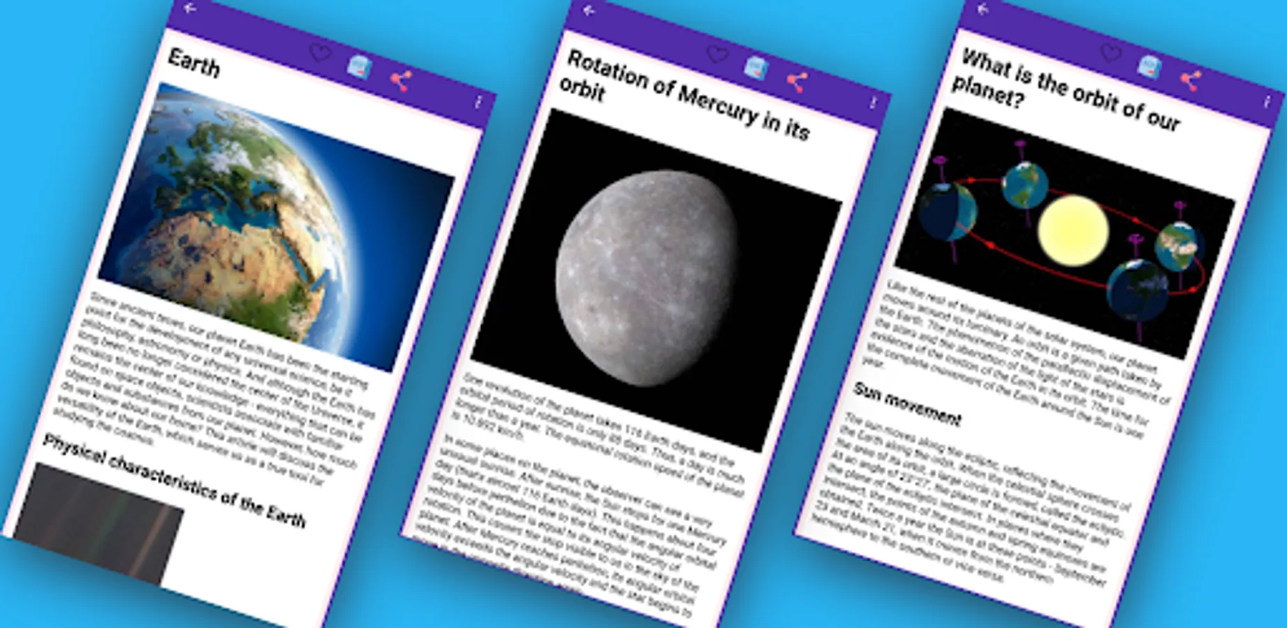 Welcome to the fascinating world of space! Our application "Planets of the solar system" will allow you to explore all the secrets of the universe and expand your knowledge of astronomy. Here you will find information about the study of space, galaxies and black holes, as well as civilizations that originated in space. We know that you can find yourself without the Internet far from the earth, so our application works even without the Internet, allowing you to continue your research. Books, textbooks, astronomy from scratch - we have collected everything you need to become a space connoisseur. You can use our application as a star assistant to study the starry sky and planets, including our solar system. Download "Planets of the Solar System" right now and go on an exciting journey through space with us!