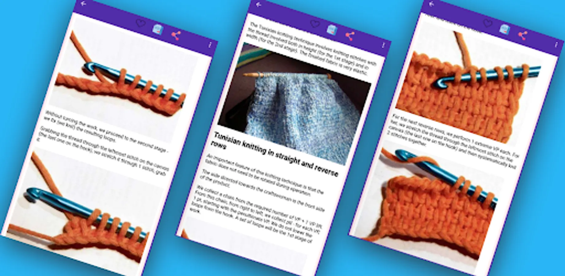"Knitting Lessons for Beginners" is an app for everyone who wants to learn knitting from scratch. With it, you can easily learn crochet, pattern knitting and other types of knitting such as amigurumi, cross stitch and bracelet knitting. This is the perfect app for beginners who want to learn how to crochet or knit, as well as for experienced knitters who want to learn new patterns and knitting techniques.
