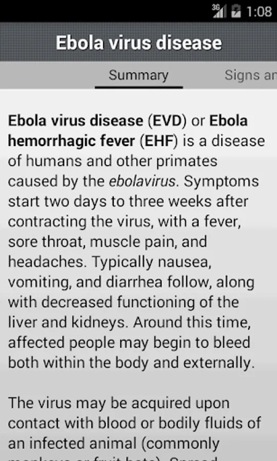 With detailed information on 1000s of diseases and probable prescription drug info, this app is a free medical encyclopedia guide. Free diseases dictionary hand book for emergency lookup of disease names to assist physicians with their daily practice. An offline disease dictionary with medical conditions ranging from ebola to acne.