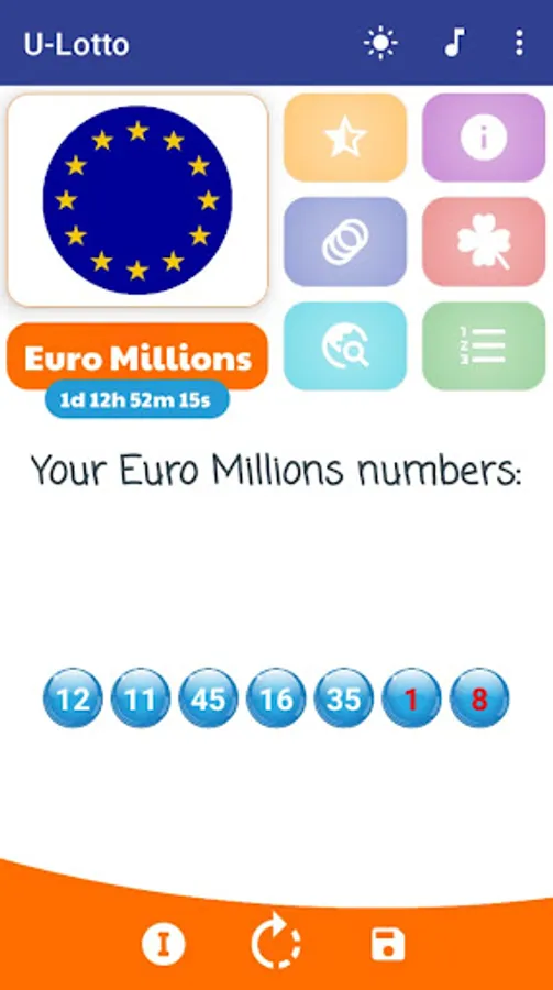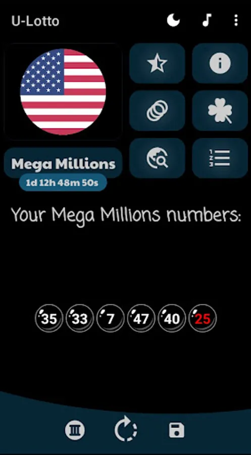 U-Lotto is a simple application that will allow you to create random lottery results for the most popular lottery games in the world, you can keep track of your favorite numbers and even share them with a single touch, it also includes a convenient dedicated screen ( tab) where you can set your favorite website, blog, forum, etc. which you can use to check the results or keep an eye on the next draw.