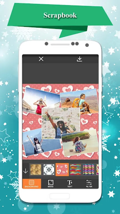 - Crop, resize, blur and beautify pictures photos in a grid for your scrapbook.