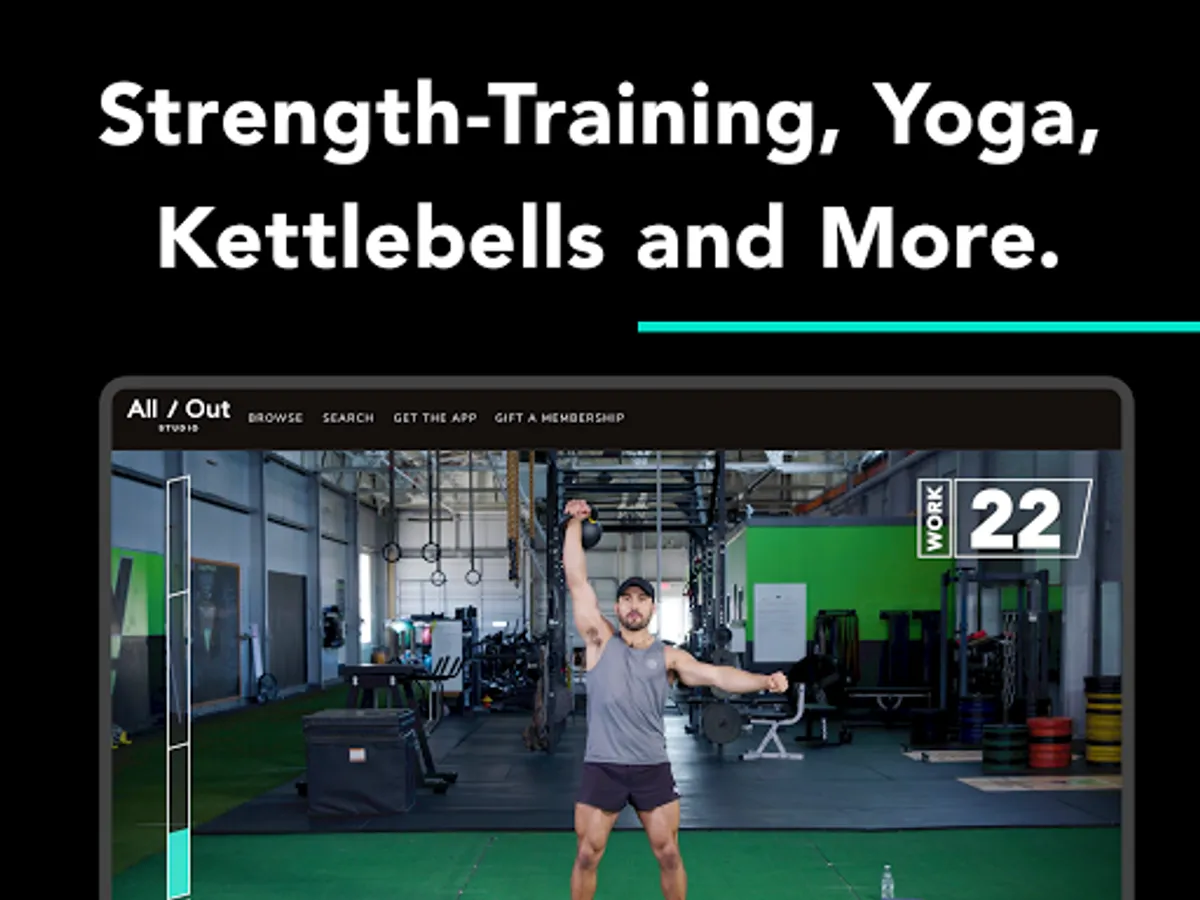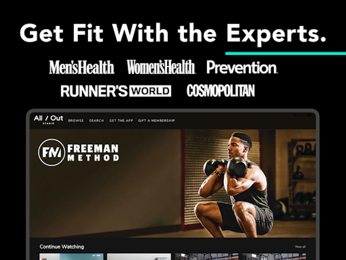 All / Out Studio is the exclusive home of on-demand workouts from Men’s Health, Women’s Health, Prevention, Runner’s World, and more.