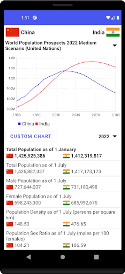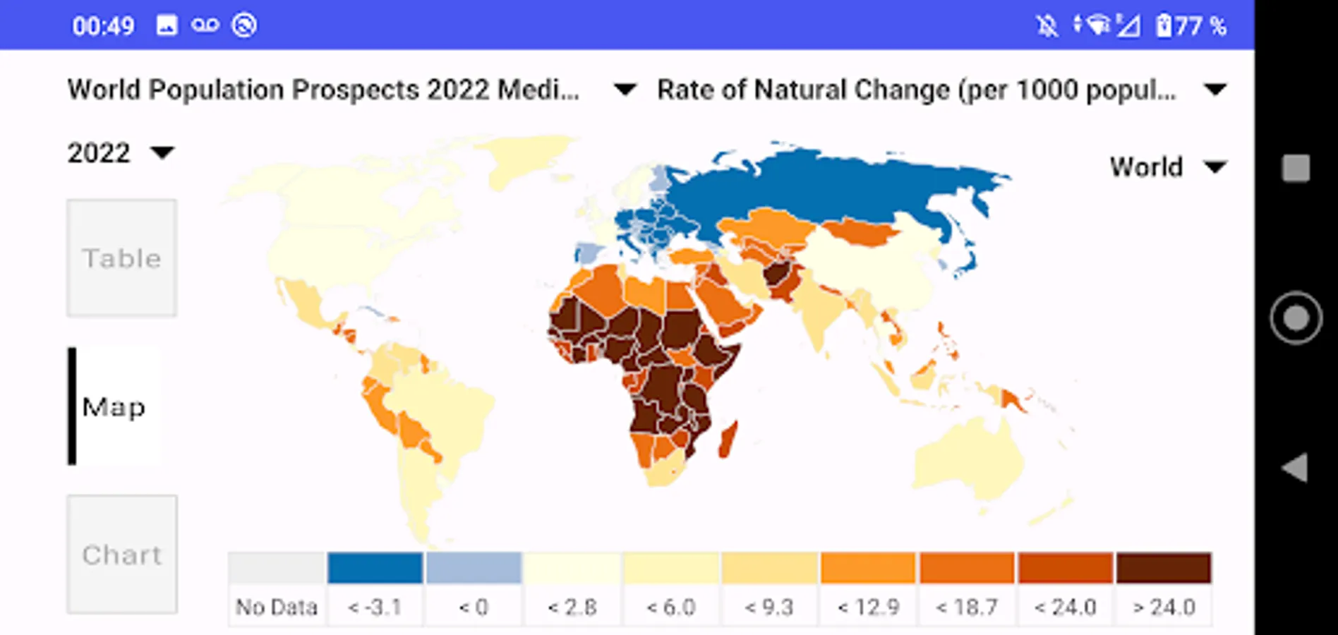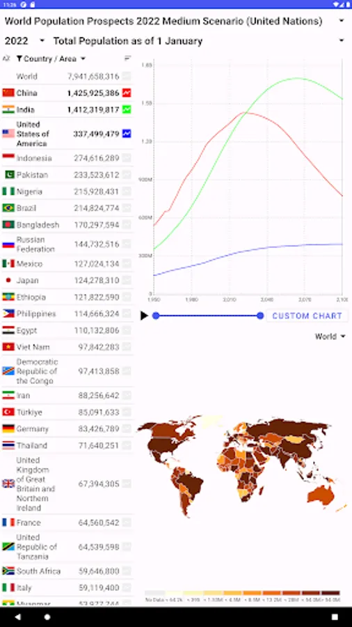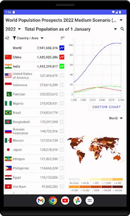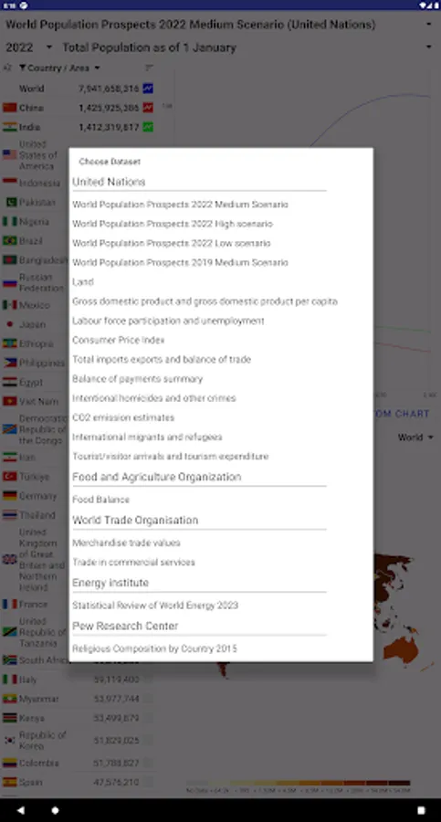 Unlock a world of knowledge and exploration with "World Population Data," the Android application for visualizing country data from diverse datasets. Dive into a wealth of information, from population trends to energy consumption, agriculture to trade dynamics, and even religious composition.