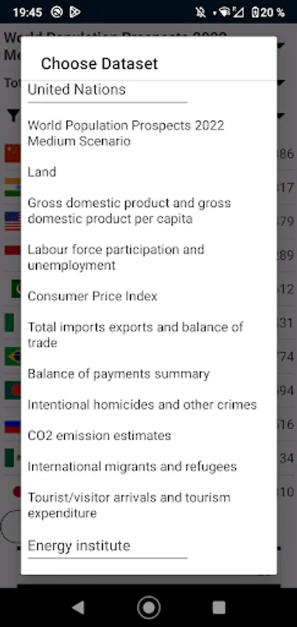 - 📈 World Population Prospects from United Nations: Understand demographic trends and projections with medium, low, and high scenarios.