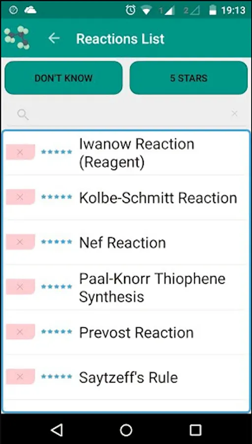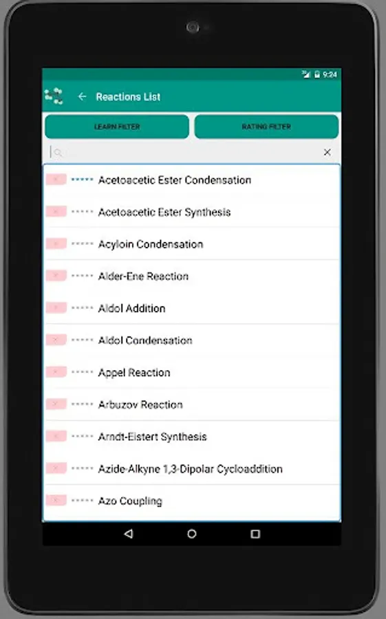 • Filtering feature to browse the reactions by rating or marking them as learned/yet to learn.