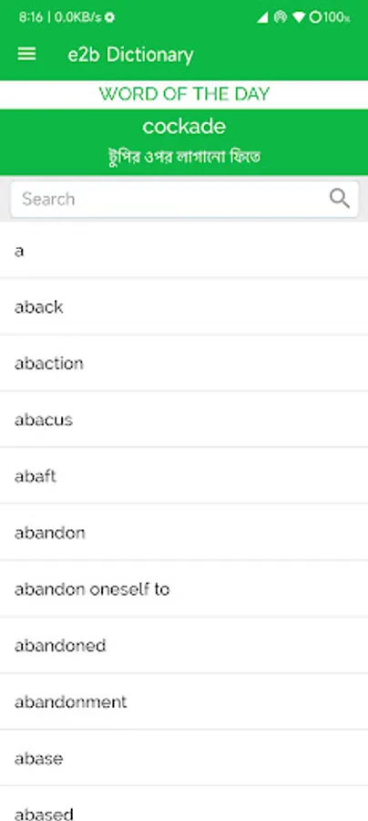 Free English to Bengali dictionary for students. Easy to search and find English words and their corresponding Bengali meaning. You can search both English and Bangla words. This is not only a Dictionary but also a learning app. You can use this dictionary when you have no Internet. MCQ option is available in this dictionary app. This English To Bangla Dictionary app is totally free and Works offline too. It has around 40000+ word meaning of English words to Bengali. There are a lot of meanings for a single word in this dictionary app, so that you can understand word meaning easily. Use the awesome dictionary app to find English to Bangla words translation and grow your vocabulary. This English to Bengali dictionary is light dictionary app which is useful for students.