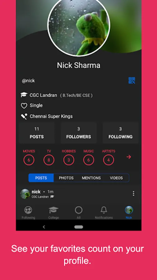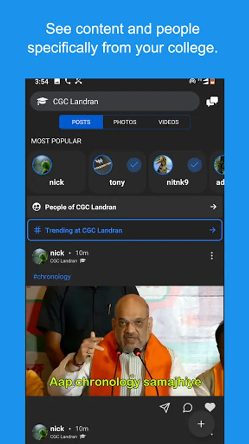 Trending options available for all as well as limited to college, i.e. you can see what #hashtags are trending at you college.