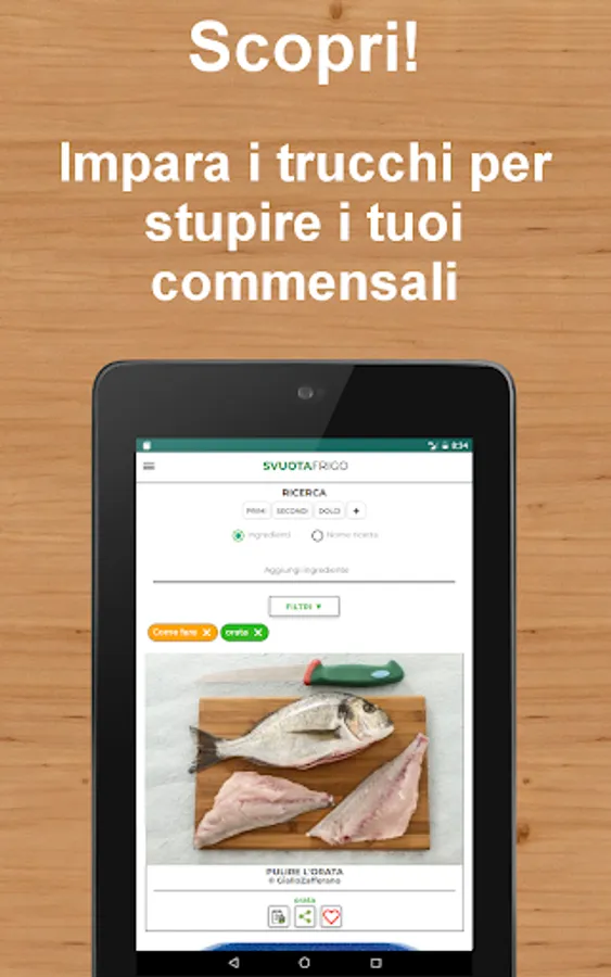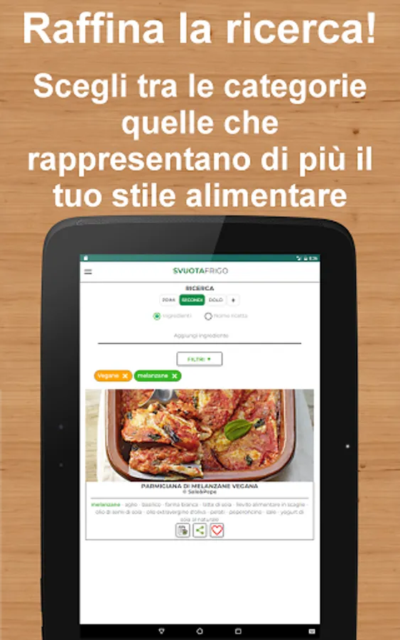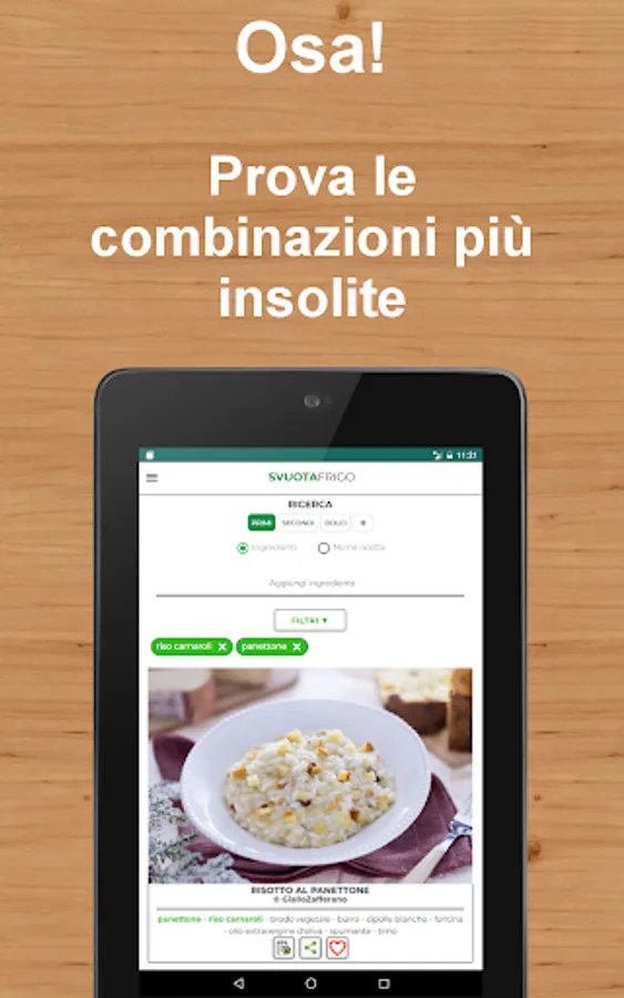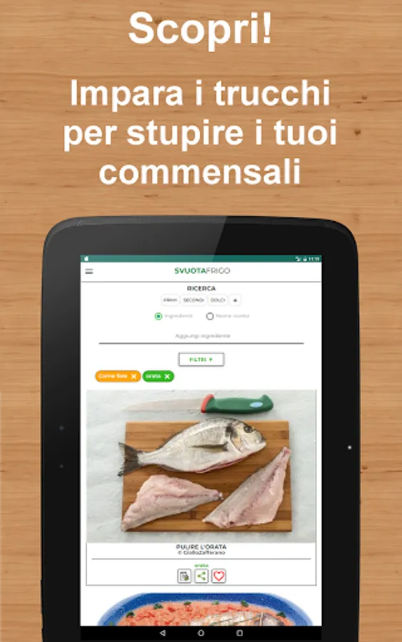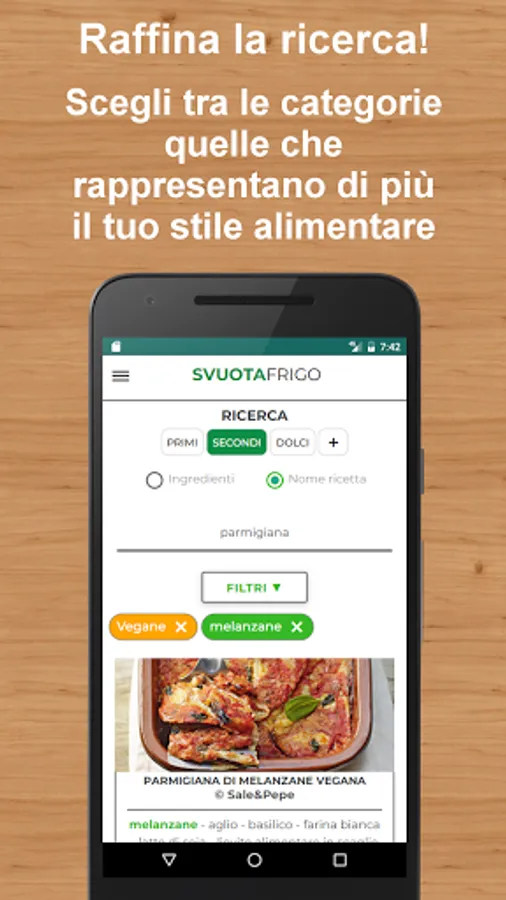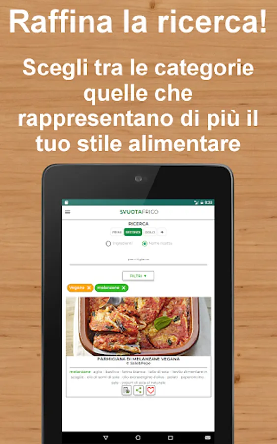 The answer is Svuotafrigo! The first search engine dedicated to the world of cooking, which helps you reduce waste.