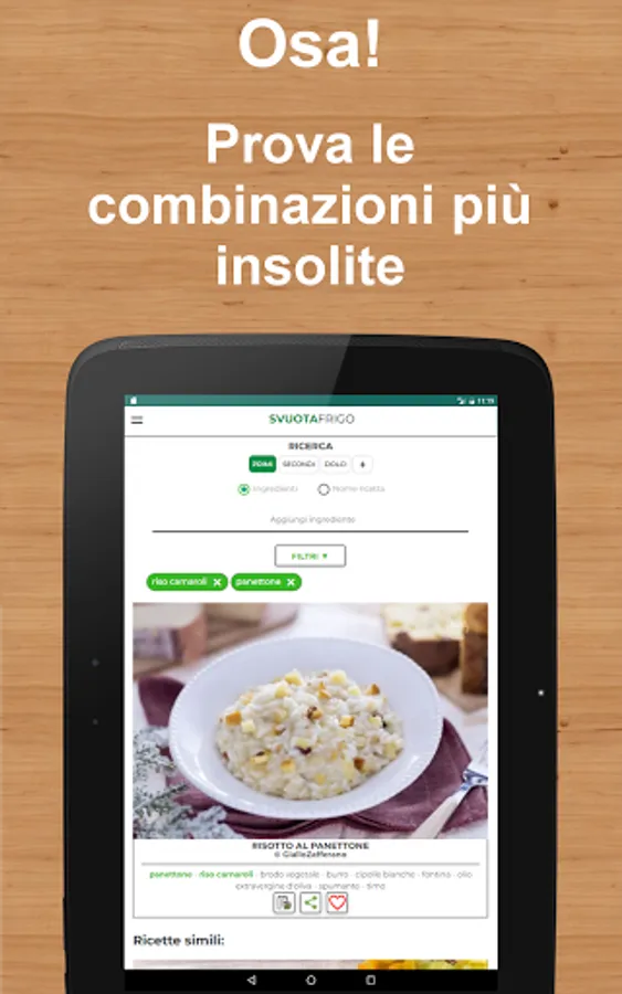 Write what you have at home and Svuotafrigo will suggest the right dish for you, searching among over 40,000 constantly updated recipes.