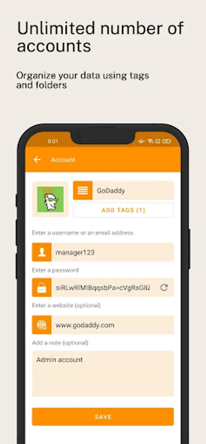 Our app offers a seamless and user-friendly interface that allows you to organize your accounts into folders and tags. You can even create custom tags with custom icons for easier navigation. Whether you want to group your accounts based on category or level of importance, our app gives you full control over how you organize your data.