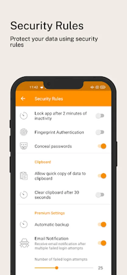 Our app also provides an added layer of security with email notifications that alert you to multiple login failures. If someone tries to access your accounts and fails multiple times, you'll receive an email notification that something may be wrong. This feature helps you stay on top of your accounts and gives you peace of mind knowing that your accounts are secure.