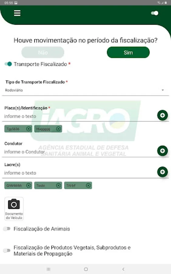 Application to record inspections performed by IAGRO servers.