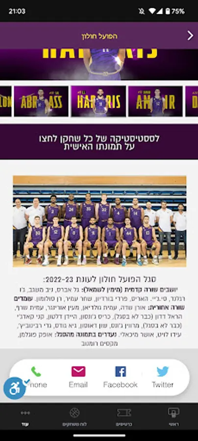 Purple goes up to the app! Hapoel Holon presents all the updates you need in real time - directly from your mobile. The new application allows you to keep up to date with: game dates and results, statistics, special articles, online tickets for games, photos and more! One click and the application is with you. Click to download.
