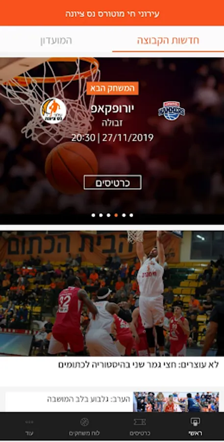 We have been renewed! Urban Basketball Club Live Motors Ness Ziona invites you to download the club's official app, in partnership with the Winner Basket League. Follow the orange from the heart of the colony in an app that will concentrate on all the information you need - game dates, tickets, games from games, exclusive articles and more! So what are you waiting for? Come on, urban orange!