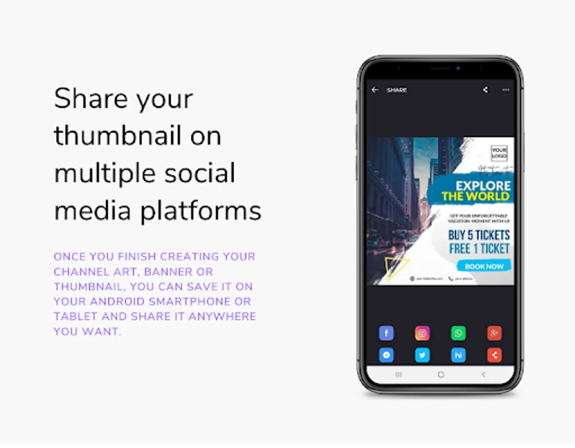 ✓ Once you finish creating your channel art, banner or thumbnail, you can save it on your android smartphone or tablet and publish it anywhere you want.