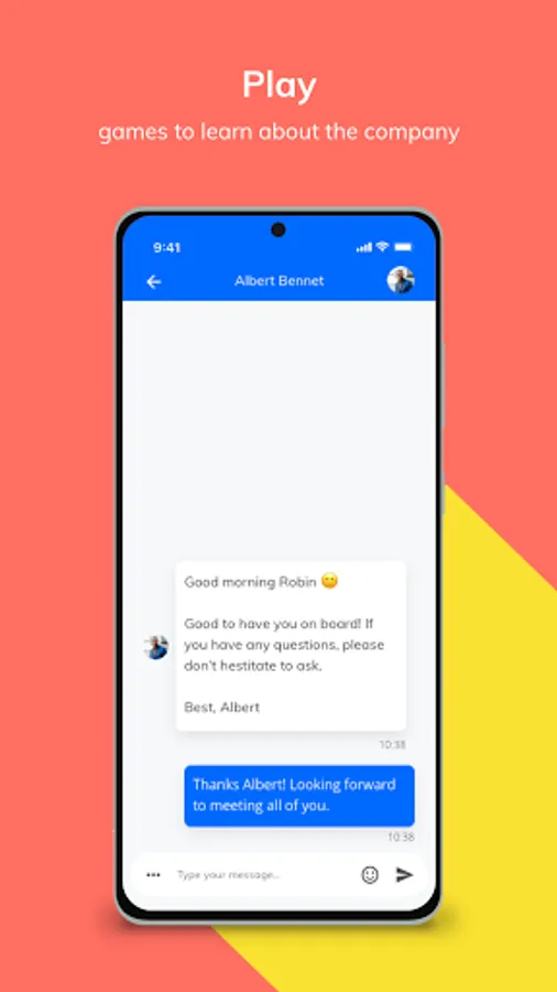 Scroll through the app to get to know your new company directly from you phone: engage with your future colleagues, tour your future office, learn all those tips and tricks that will make you arrive at your first day nerves free and ready to roll!