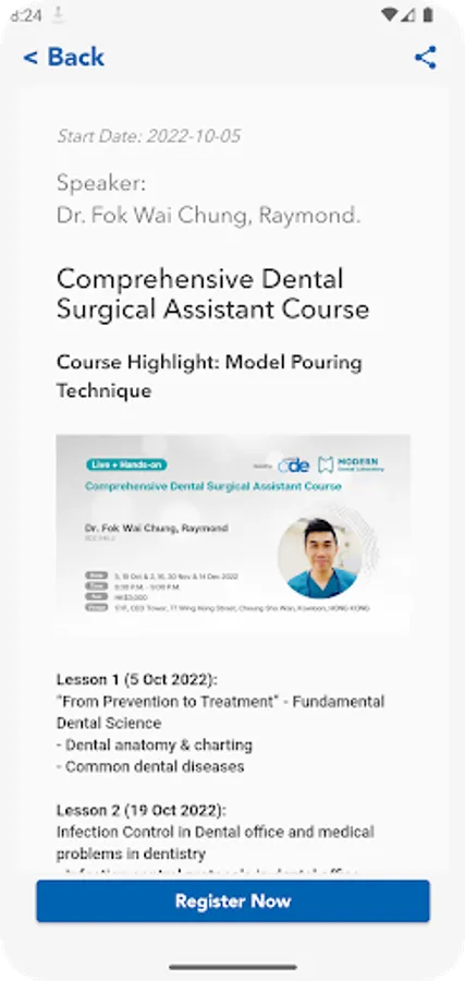 • Dental Course Update
