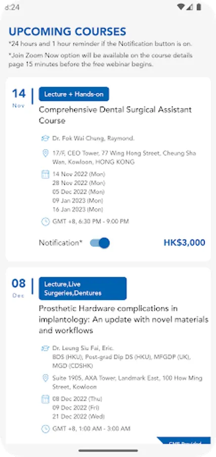 • Course Notification