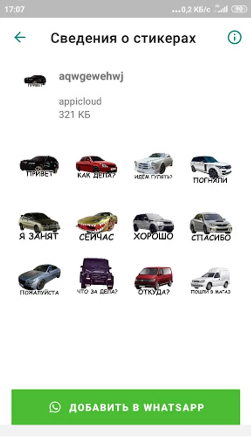 Cool Russian stickers from the WASticker car for free for your messenger.