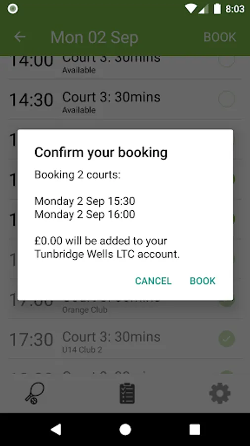 - Make tennis court bookings (including multiple tennis court slots in one tap!)