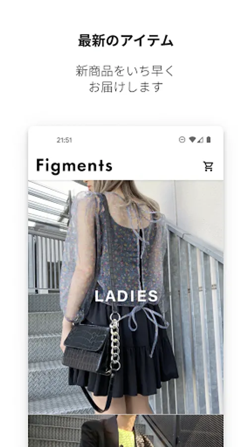 Figments Fashion mail order site An app that allows you to see the latest items and crisply! You can purchase smoothly as it is in the app! Unisex fashion that overturns reality and breaks common sense for those who enjoy change with the times of fashion, music and culture