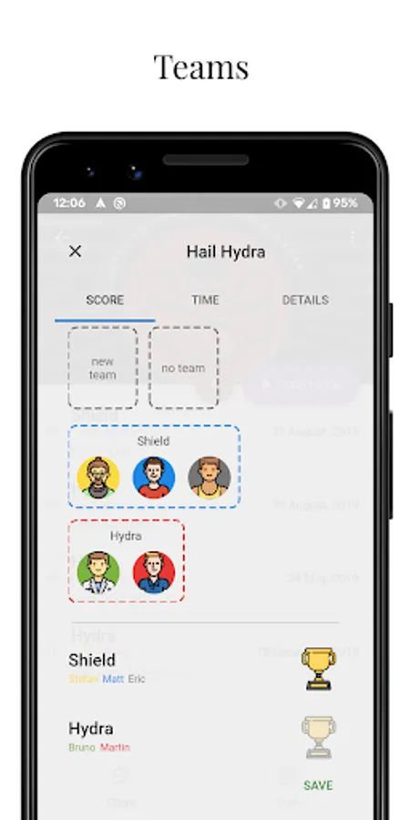 - Arrange teams after the game for team scoring or before the game if you want to track time per team