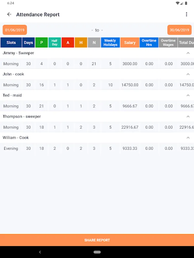 Our app automatically calculates their salaries and provides valuable insights into your payables, employee overtime, and remarks.