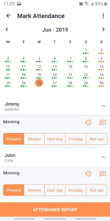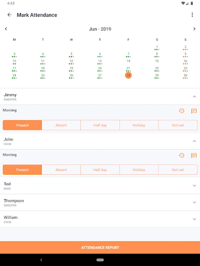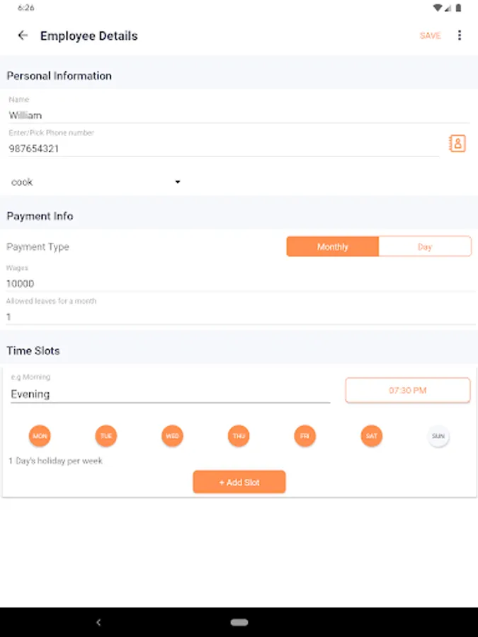 Sign up with just your phone number or email and start adding your staff. Input their working days, shifts, remarks, overtime details, and wages, and mark their attendance with just a tap.
