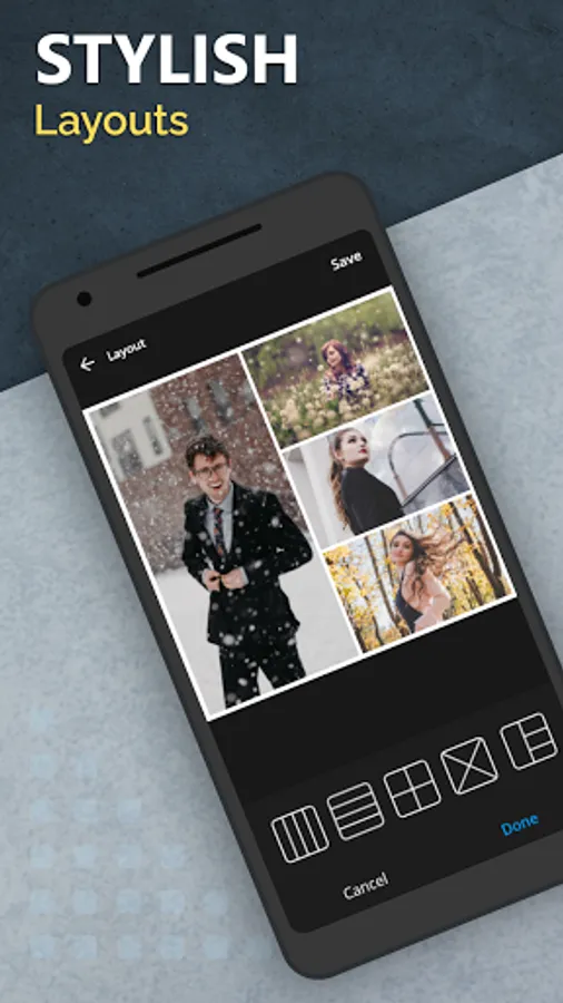 Collage editor is an awesome picture editor and collage-making app for your photos. Offers many templates, photo grid collage and border for your lovely selfies. Add cute picture stickers to have funny collages. Collage maker brought all the photo editing apps you need including the professional filters and background changer. With collage maker celebrate special days virtually. Edit photos like a pro and share your artwork on Instagram, Facebook, etc.