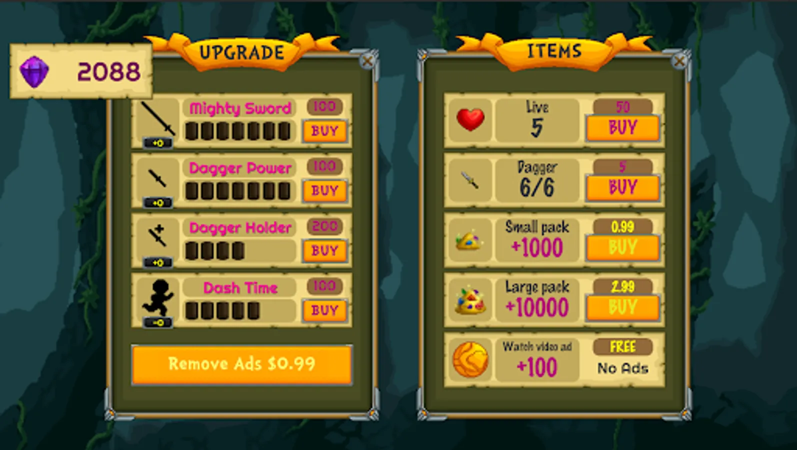 In your hands you have everything you need: jump and run, higher and further. Use all your weapons, both your great sword and your accurate throwing daggers. And remember, you can improve your abilities and your weapons by collecting all the gems you find along the way.